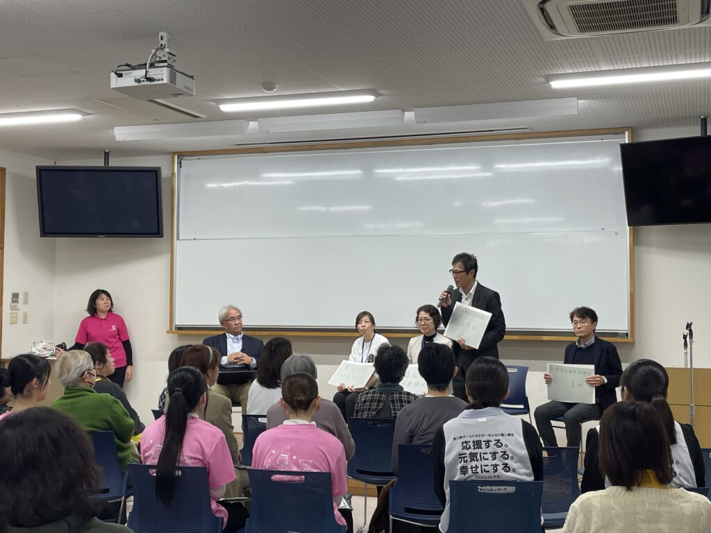 右から 香川県社会福祉協議会 日下直和さん/四国日清株式会社 岩田幸浩さん/高松市 太巻絹代さん/高松大学・高松短期大学 川口めぐみさん