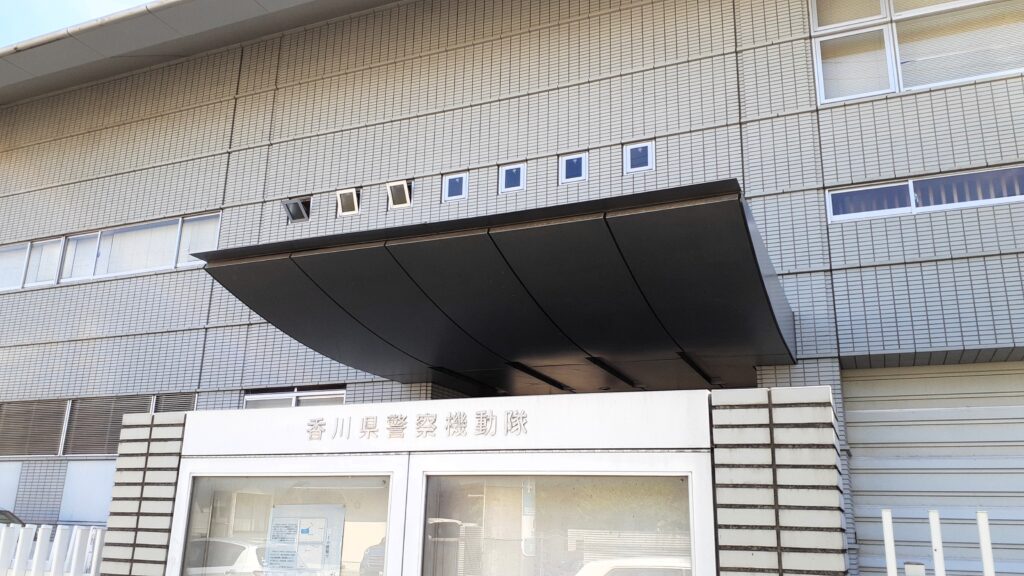 今回は、高松市多肥下町の香川県警察本部 機動隊へ伺いました。警察官を対象とした「災害救助活動におけるハイブリッドカー等取扱安全セミナー」を開催するためです。