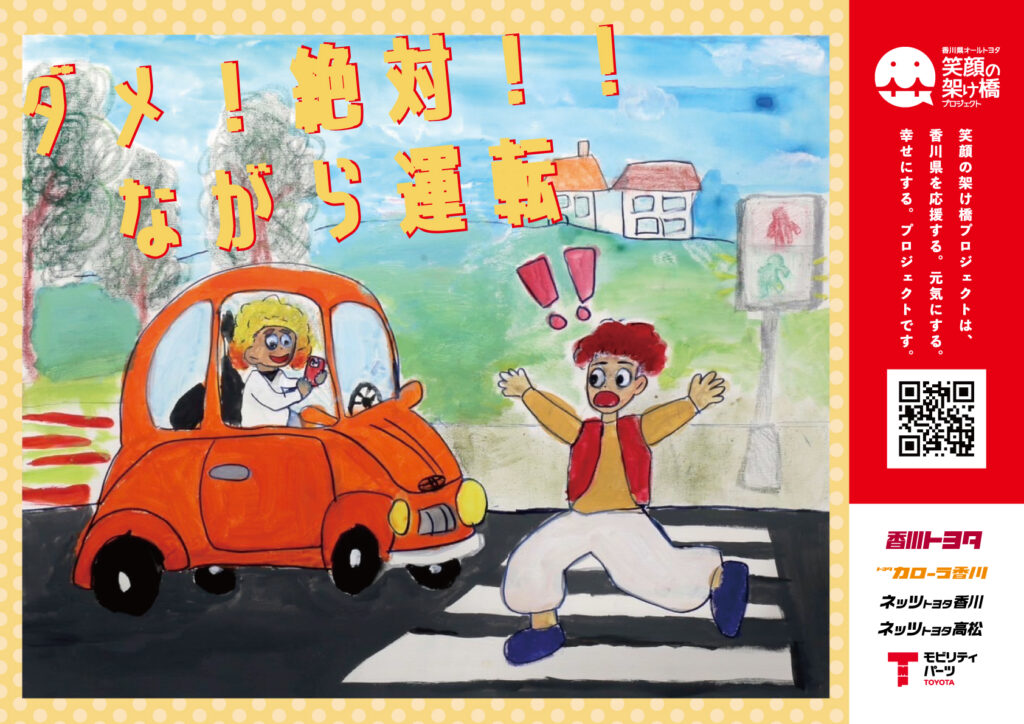 注意力が散漫となり、目の前のことに気づけない“ながら運転”をなくしたい。そういう思いで作品にしました。/トヨタカローラ香川
